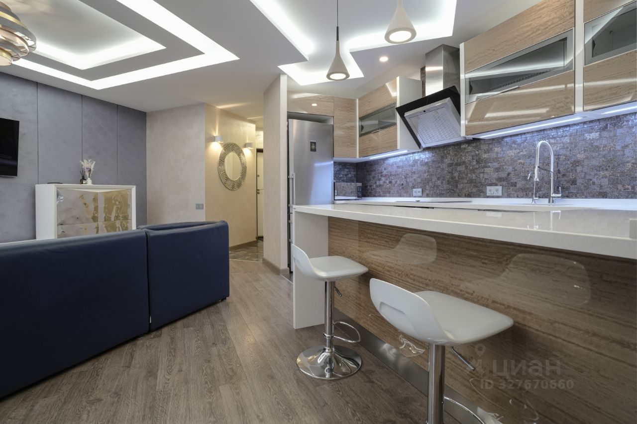 В квартире выполнен качественный ремонт по авторскому проекту в современном стиле, с использованием строительных материалов из коллекции Roberto Cavalli, натуральным паркетом, дверями МДФ под лаком. Покрытие стен декоративная штукатурка, выполненная в разных техниках нанесения. Мебель в гостиной DMG(Германия), смесители и душевые системы Tres (Италия). Кондиционеры Mitsubishi. Установлена сигнализация и система пожарного оповещения. Система блокировки воды на случай затопления. Вся сантехника высокого качества.