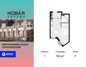 Продаётся 1-к квартира 30.4 кв.м. на 8-м этаже 22 этажного дома, корпус 2 - Резиденция "Сочи" . Без отделки.