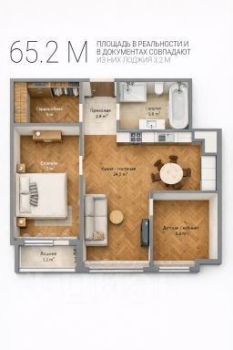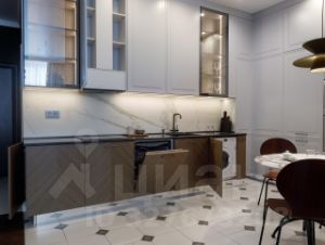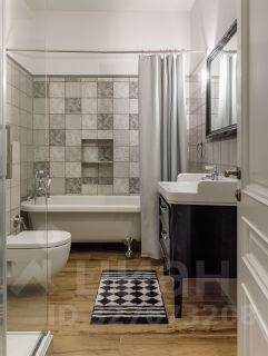 Есть гардеробная, огромный санузел и с ванной, и с душевой, спальня, кабинет/детская и большая кухня-гостиная (подробнее см. на планировке в фото)