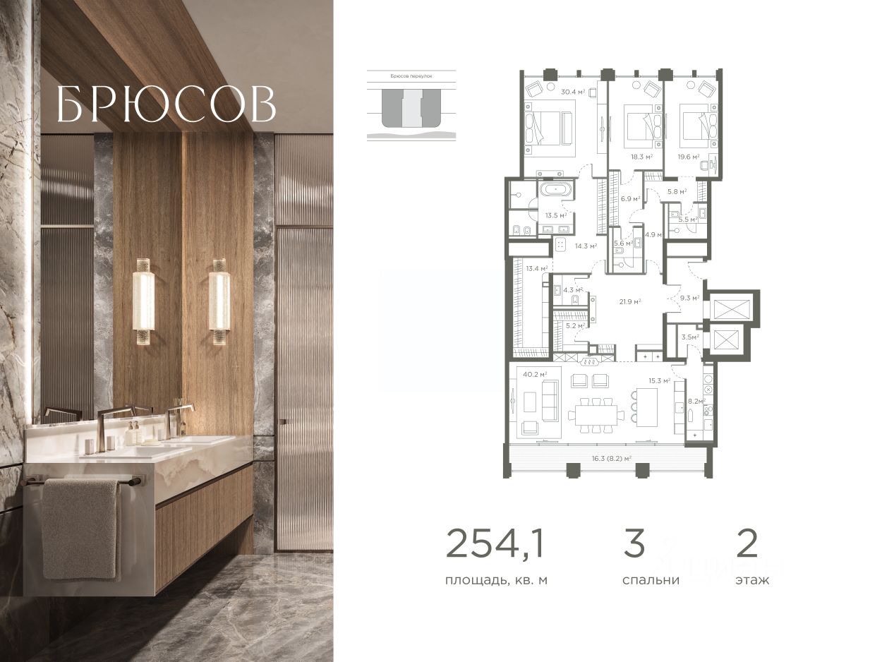 Резиденция в клубном доме Brusov — где каждый день начинается с тишины и света. Всего 17 адресов в самом сердце Москвы могут носить имя Brusov. Предлагаемая резиденция — одна из них. Расположенная в историческом Брюсовом переулке, в пяти минутах от Кремля, она хранит атмосферу старой Москвы: размеренную, интеллигентную, вневременную. Здесь нет суеты — только уют внутреннего двора, шелест воды у фонтана и мягкий свет заката за панорамными окнами. Интерьер создан 1508 London — британским бюро, чьи проекты украшают резиденции по всему миру. В этой квартире всё говорит о сдержанной роскоши: тёплый оттенок дубовой инженерной доски с уникальной раскладкой, текстильные обои и панели из натурального шпона на стенах; дровяной камин как центр гостиной; итальянская кухня Boffi, исполненная по индивидуальному со встроенной техникой Gaggenau; ванная как личное спа: натуральный мрамор, сантехника Antonio Lupi / CEA, баланс текстур и света. Окна — Sky-Frame и Forster — почти стирают границу между интерьером и двором. Благодаря стеклу Saint-Gobain с улучшенной цветопередачей и энергосберегающим покрытием, пространство наполнено естественным светом, но остаётся защищённым от городского шума и холода. Инженерия работает незаметно, но безупречно: индивидуальная система климат-контроля с увлажнением, "холодный потолок", многоуровневая фильтрация воздуха и воды, система "Умный дом". Сервис в Brusov — это невидимый слой спокойствия: круглосуточный консьерж, отдельный лифт для персонала, закрытое лобби с дровяным камином и видом на патио, а также подземный паркинг с Rolls-Royce-friendly машиноместами и зарядками для электромобилей. Эта резиденция — не просто недвижимость. Это адрес для тех, кто выбирает жизнь, выверенную до детали: без компромиссов, но без показной демонстрации. Для тех, кто ценит истинную роскошь — ту, что чувствуется, а не афишируется. Количество адресов в доме ограничено — как и круг тех, для кого они предназначены.