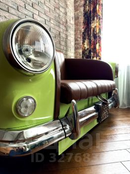 -раскладной диван от творческой мастерской Измашин — эксклюзивная работа в единственном экземпляре. Диван изготовлен из советского автомобиля Москвич407 и обит натуральной кожей.