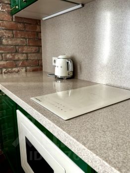 Раковина оборудована пищевым измельчителем, а столешница выполнена из искусственного камня.
