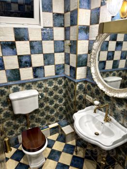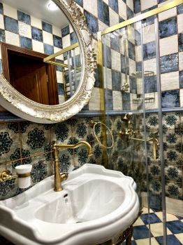 - Ванная комната оформлена итальянской плиткой и итальянской сантехникой.