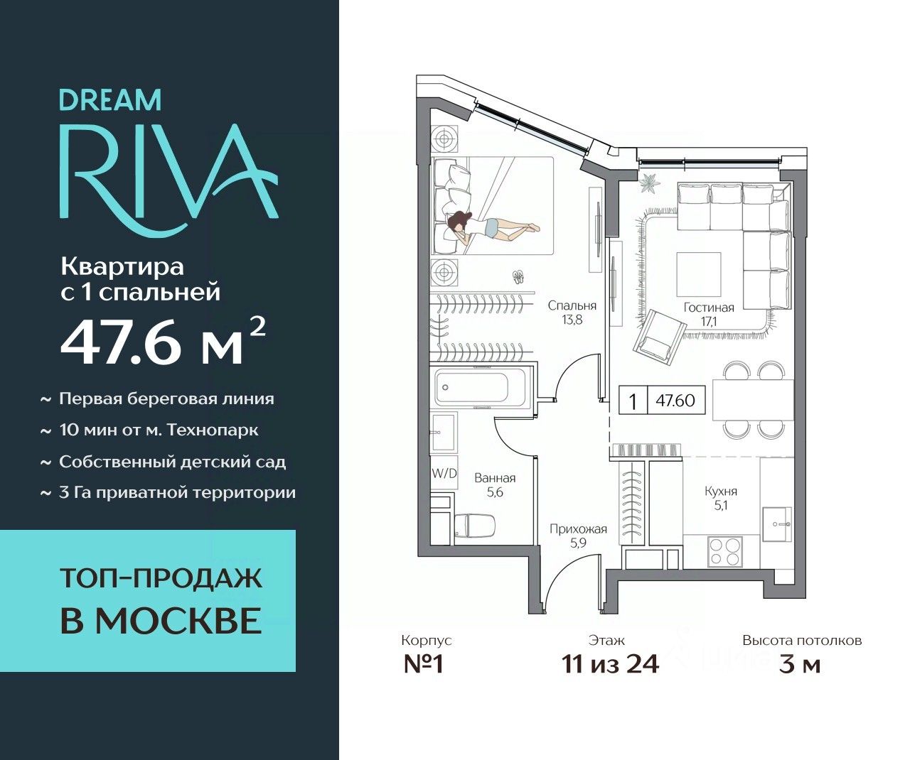 Квартира в премиальном квартале Dream Riva — первая линия Москвы-реки