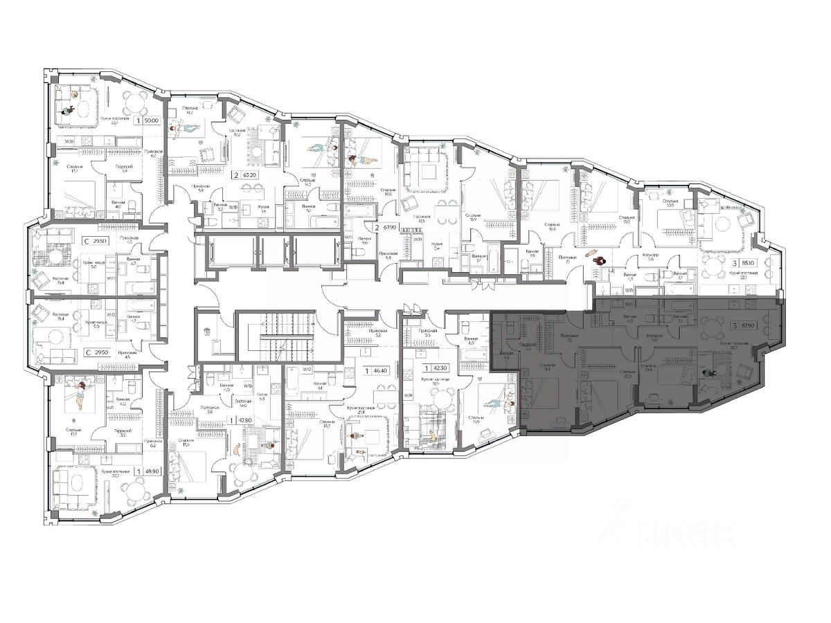 87.9 кв.м, 4 комнаты, 4 этаж..