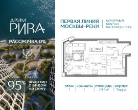 Квартира в премиальном квартале Dream Riva — первая линия Москвы-реки Продается квартира в прибрежном квартале Dream Riva на территории курортной локации "Остров мечты". 29.5 кв.м, 1 комнат, 1 этаж. Высота потолков 3,1 м. • 95% квартир Жемчужной коллекции смотрят на воду • Мастер-спальня с гардеробной • Естественный свет в гостиной с двух сторон ЛОКАЦИЯ И ТРАНСПОРТ • 15 минут на авто до Садового кольца, • 30 минут до Москва-Сити и Кремля. • 10 минут до метро "Технопарк" в пешей доступности. В перспективе — станция "Остров мечты" (2028г.). ИНФРАСТРУКТУРА КВАРТАЛА • 3 Га приватного двор-парка с зонами для спорта, йоги и отдыха; • Благоустроенная набережная с гастропроменадом; • Клубные лобби с инфраструктурой; • Премиум SPA-центр с бассейном и фитнес-клуб; • Государственный детский сад под окном и школа в 10 минутах от квартала; • Подземный и гостевой паркинг. ПРИВИЛЕГИИ РЕЗИДЕНТОВ • Пляжный клуб Dream Beach Club; • Яхт-клуб Dream Marine Resort; • Вейк-клуб; • Парк развлечений "Остров мечты"; • 44 Га парков для прогулок и спорта в окружении квартала. БЕЗОПАСНОСТЬ И КОМФОРТ • Приватная территория; • Охрана; • Видеонаблюдение; • Консьерж-сервис 24/7; • Современные инженерные системы и технологии умного дома. НАДЕЖНЫЙ ЗАСТРОЙЩИК Regions Development — успешная девелоперская компания. За 20 лет работы реализовали уже более 30 проектов в сегментах коммерческой и многофункциональной недвижимости. Скидки действуют только при 100% оплате и ипотеке Скидки действуют только при 100% оплате, ипотеке и рассрочке. Скидки и акции не суммируются. Звоните, чтобы договориться о просмотре!