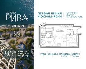 Квартира со 100% видом на Москву-реку в премиальном квартале Дрим Рива — первая линия Москвы-реки.