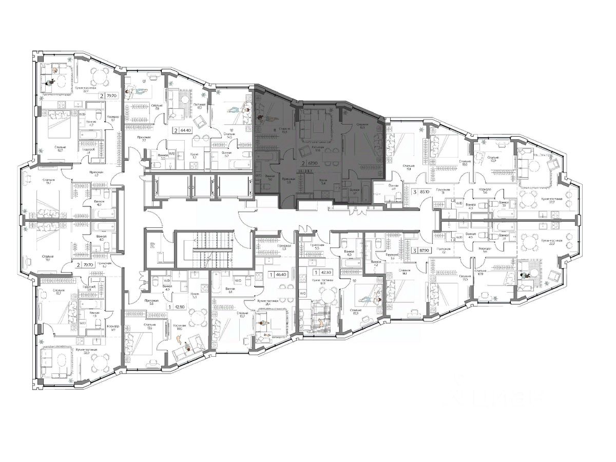 67.9 кв.м, 3 комнат, 3 этаж.