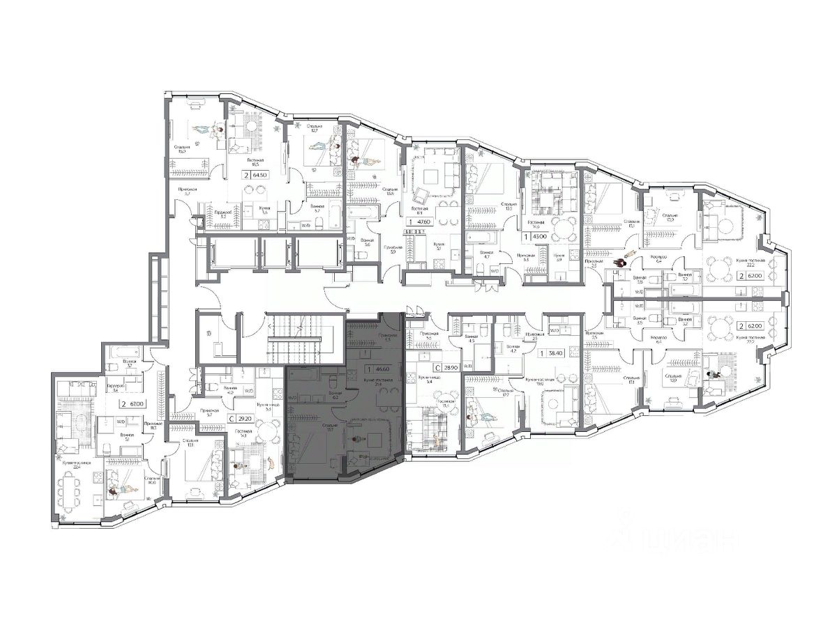 46.6 кв.м, 2 комнаты, 2 этаж.