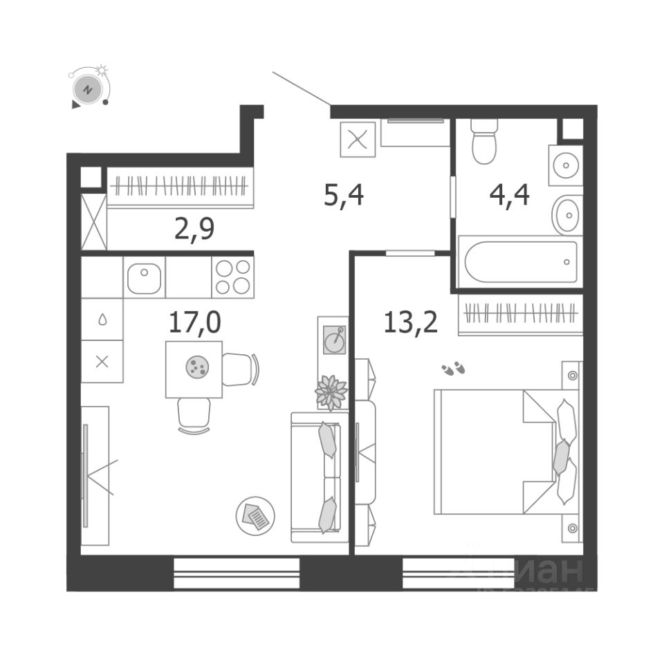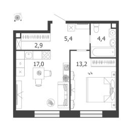 Продаётся 1-комнатная квартира в строящемся доме (Корпус 5 (3 очередь)), срок сдачи: IV-кв. 2026, общей площадью 42.9 кв.м., на 14 этаже. Это город в городе, который не подстраивается под старые рамки, а задает новую планку и стандарт жилого района в России.