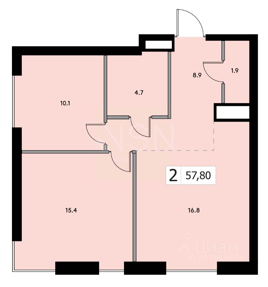 Общая площадь57,8 м²