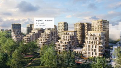 Отделка фасадов корпуса класса Суперб выполнена из природного камня. Дом возводится по технологии монолитного строительства. В квартире проведены работы по улучшению шумоизоляции, установлены двухкамерные стеклопакеты с низкоэмиссионными стёклами, минимизирующими теплопотери. Высота окон — от 3,1 до 3,25 м.