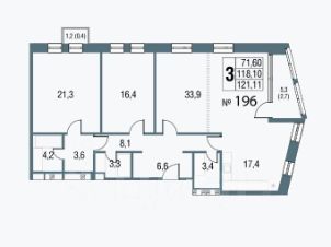 Вашему вниманию предоставляется эксклюзивная квартира площадью 121.7м2 под реализацию ваших идей дизайна.