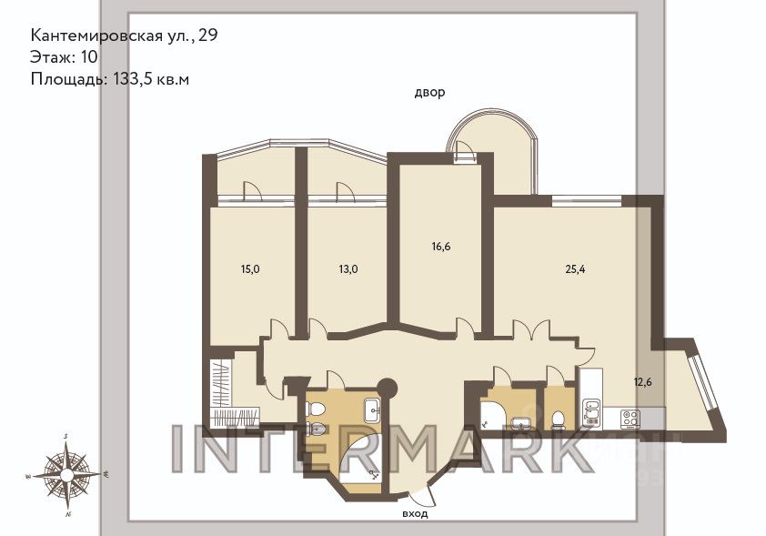 ID 65171: Эксклюзив. Только в Intermark. Просторная 4-комнатная семейная квартира с продуманной планировкой и качественной инженерной начинкой в современном монолитно-кирпичном доме 2001 года постройки в зеленом уголке района Царицыно.