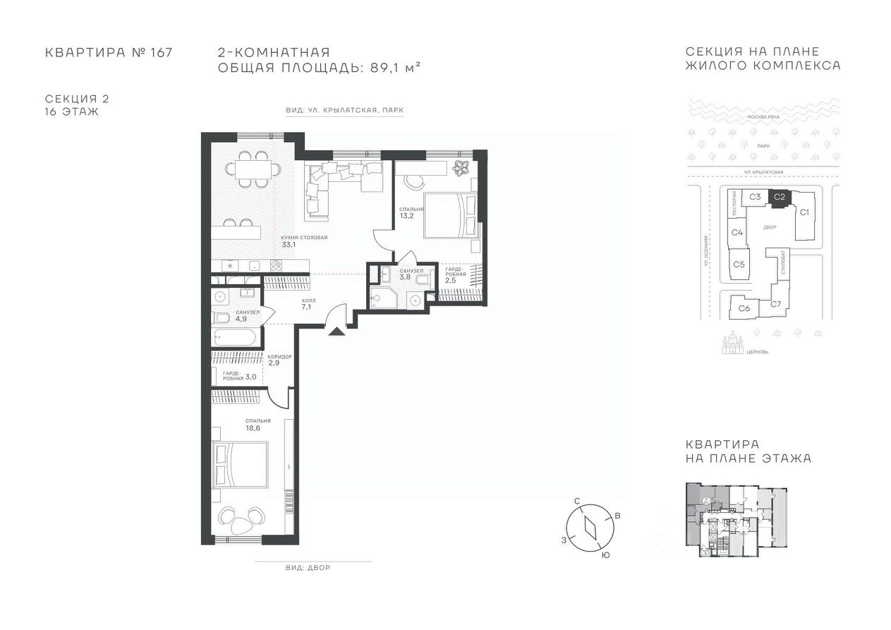 Продается 2-к квартира площадью 89.1 кв.м. на 16-м этаже в ЖК "Клубный квартал Крылатская 33". Прямая продажа от застройщика!