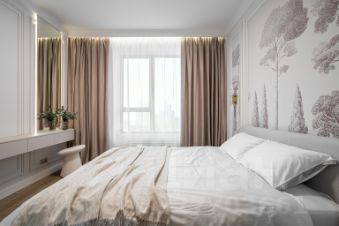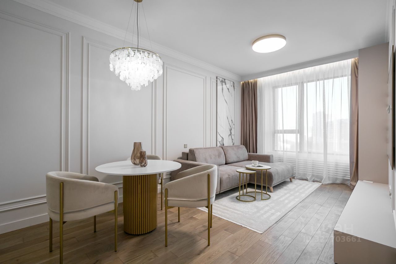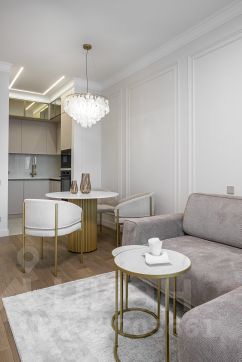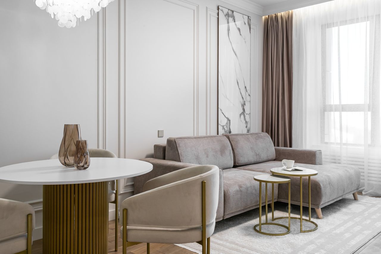 Интерьер выполнен в спокойной пастельной гамме, где каждая деталь продумана для комфортной жизни и отдыха после насыщенного дня.