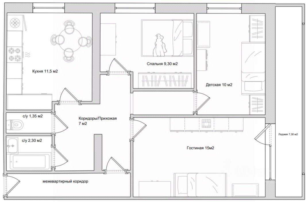 Планировка: Комнаты изолированы друг от друга — никакого "проходного двора", только личное пространство для каждого.