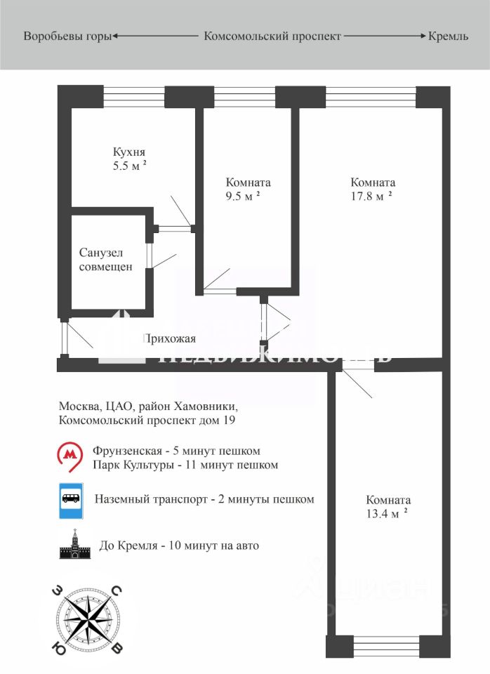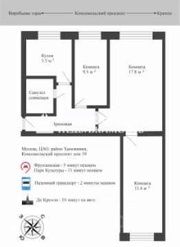 - До станции МЕТРО: Фрунзенская 5 минут пешком, Парк Культуры 11 минут пешком, до Кремля - 10 минут на авто.