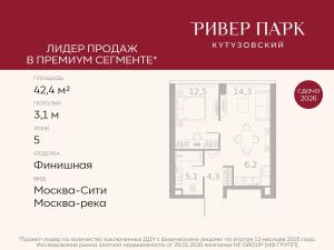Продается 1-к квартира площадью 42.4 кв.м. на 5-м этаже в жилом комплексе премиум-класса Ривер Парк Кутузовский в Башне Топаз