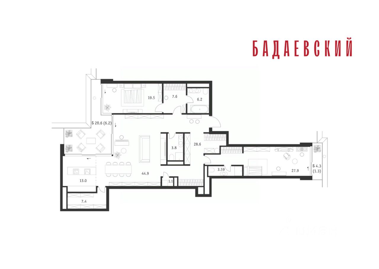 Продаётся 3-комнатная квартира общей площадью 172.30 м² на 11 этаже Жилого Комплекса Бадаевский.
