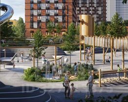 В проекте появится масштабное пространство площадью 4Га - МультиХаб "Атлас". Для юных жителей появится большая игровая площадка с горными хребтами для лазания, ручьём золотоискателей, лесным фортом и песочной зоной для малышей. Дети смогут придумывать здесь бесчисленное количество игр независимо от своего возраста.
