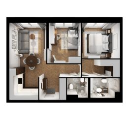 В проект входит 10 корпусов с просторными и светлыми подъездами, два детских сада и подземный паркинг. Внутри квартала будут уютные дворы-парки с детскими площадками и местами для отдыха. А чуть дальше, чтобы шум не беспокоил жителей домов, мы построим спортивные площадки. Во всех квартирах в этом проекте предчистовая отделка, с которой легче реализовать ваши дизайнерские идеи.
