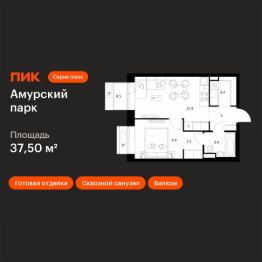 Продаётся 1-комн. квартира площадью 37,5 кв.м на 12 этаже 12 этажного дома (Корпус 4.2, Секция 2) проекта ПИК Амурский парк. Светлый просторный подъезд на уровне земли, функциональная планировка, большие окна, c отделкой.