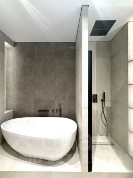 Встроенная сантехника скрытого монтажа, создающая лаконичный дизайн ванной комнаты (вся сантехника брендов: Omnires, Grohe, Villeroy & Boch). Инсталляция