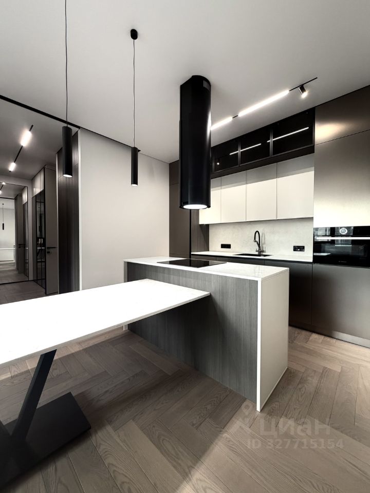 Ремонт выполнен с использованием дорогих материалов. На полу уложена инженерная доска прайм селекции. Двери скрытого монтажа, высотой 2.8 м.