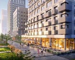 Проект состоит из зданий разной высоты и разной по характеру архитектуры. Узнаваемой доминантой квартала станет башня из стекла и металла, напоминающая водопад.