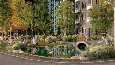 Чтобы отдохнуть от суеты города, достаточно выйти во двор: здесь раскинулся настоящий лес с живописными пейзажами. В тени деревьев жителей ждут пруд с мостиком и беседкой на берегу, тихие прогулочные аллеи, спортивная площадка и зоны для занятий йогой и бадминтоном на свежем воздухе.