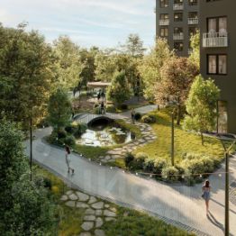 Чтобы отдохнуть от суеты города, достаточно выйти во двор: здесь раскинулся настоящий лес с живописными пейзажами. В тени деревьев жителей ждут пруд с мостиком и беседкой на берегу, тихие прогулочные аллеи, спортивная площадка и зоны для занятий йогой и бадминтоном на свежем воздухе.