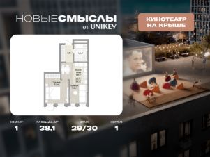 В жилом комплексе, расположенном по соседству с ландшафтным парком "Южное Бутово", продается 1-комнатная квартира площадью 38.10 кв. м. без отделки. Квартира расположена на 29 этаже 1 корпуса в жилом квартале комфорт-класса "Новые Смыслы" (ГК Unikey/Юникей).