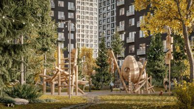 Юных жителей порадуют современные детские площадки, жукарий и специальное пространство для подвижных игр.