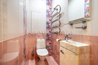 О КВАРТИРЕ: Отличная 2-х комнатная квартира общей площадью 87,8 кв.метр состоит из гостиной комнаты, двух изолированных спальных комнат и кухни площадью 15 кв.метров. В квартире выполнен евро ремонт в современном стиле в светлых тонах. В наличии 2 сан узла, встроенные шкафы и большая гардеробная комната. Теплые поли в сан узлах, коридоре и на кухне. Одна из спален оборудована кондиционером. Панорамные окна и панорамный вид на центр столицы, на восток по сторонам света. Кухонный гарнитур, мебель и техника остаются новому владельцу и входит в стоимость квартиры.