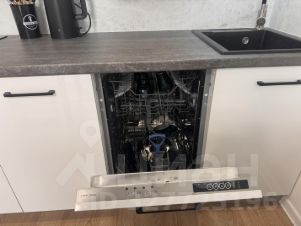 Квартира укомплектована мебелью и техникой: стиральная машина, посудомоечная машина, варочная панель, вытяжка, холодильник.