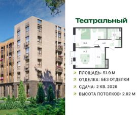 В современном квартале бизнес-класса ЖК Театральный продаётся 2-комнатная квартира, общей площадью 51.9 кв.м, расположенная на 3 этаже (корпус 2, секция 6).