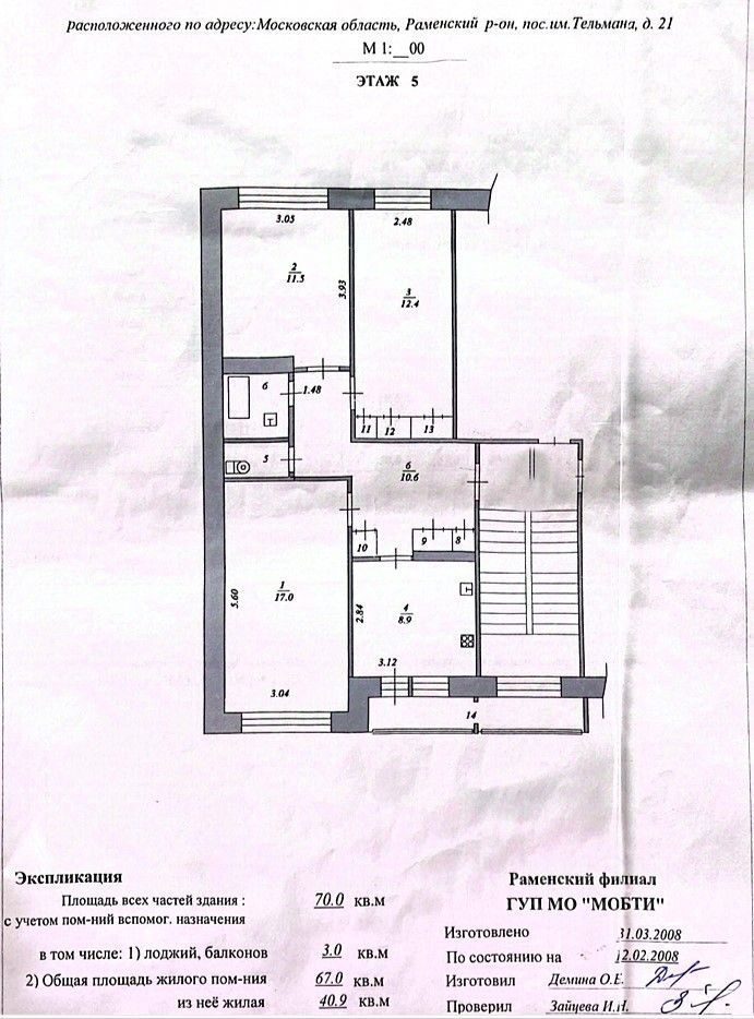 Арт. 132690466 Продается просторная трехкомнатная квартира в поселке имени Тельмана Раменского городского округа. Квартира расположена на пятом этаже панельного дома и имеет общую площадь 67 квадратных метров.