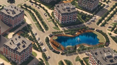 Сердце квартала — современный пруд с собственной экосистемой. Летом здесь фонтан, мостики и шезлонги, а зимой пруд превращается в атмосферный каток. Это место для прогулок и отдыха, не выходя из района.