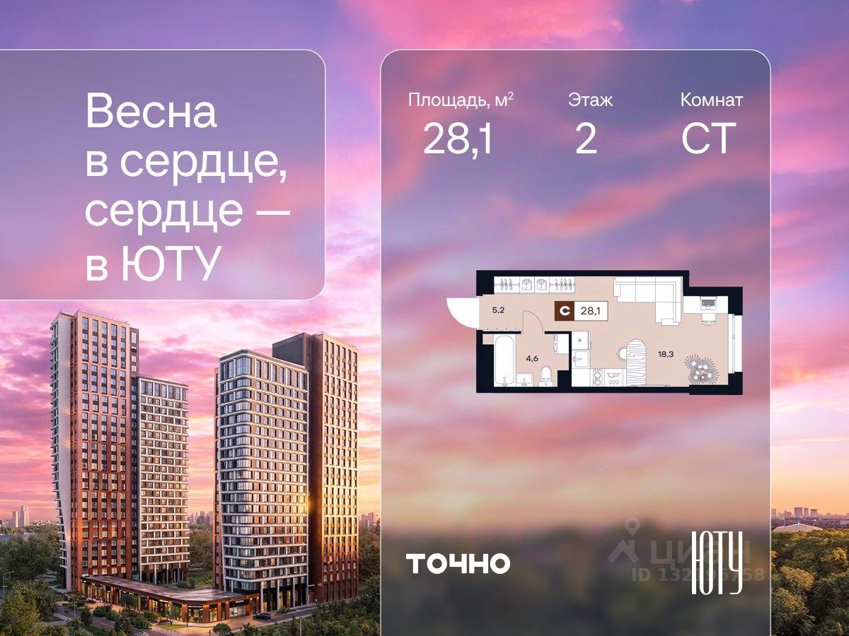 Новогодний марафон скидок! Выгода до 20% в декабре. ЮТУ-камерные небоскребы бизнес-класса с исключительной архитектурой, видовыми квартирами и подходом к большой воде-благоустроенной набережной канала имени Москвы. Проект ЮТУ создает идеальный баланс жизни в городе. Это приватный оазис, где в любой момент можно сменить контекст и выбрать любой из тысячи маршрутов к активному отдыху и ярким впечатлениям. Локация премиум-класса • Первая линии в прибрежной части Химкинского водохранилища • Исключительно тихий и зелёный район Южное Тушино • За 2 минуты можно спуститься к воде, за 10 минут найти зеленые парки и готовую инфраструктуру, за 30 минут доехать до Кремля Концепция проекта • Две футуристичные башни, соединенные торговой галереей от бюро ATRIUM • 60 неповторяющихся планировок: квартиры с угловым "плавным" панорамным остеклением, мастер-спальнями и гостиными до 39м² и просто очень большие квартиры площадью до 128,6 м² • Беспрецедентная коллекция видов-в проекте 80 % видовых квартир Чувство эксклюзивности • Своя приватная жилая экосистема -только для резидентов домов • Лаунж-терраса на крыше • Пространство скрыто от посторонних глаз-с трех сторон его окружают строения проекта Прогрессивные технологии • 3-уровневая система безопасности (Face ID, BLE-метки, видеонаблюдение) • Умный паркинг с распознаванием номеров Проект федерального девелопера ТОЧНО-из ТОП-3 застройщиков России. Компания в проекте реализует ответственный подход к развитию пространств для благополучной жизни человека. И что в ЮТУ особенное воплощение приобретает концепция человекоцентричности, как заметная грань девелопмента ТОЧНО.