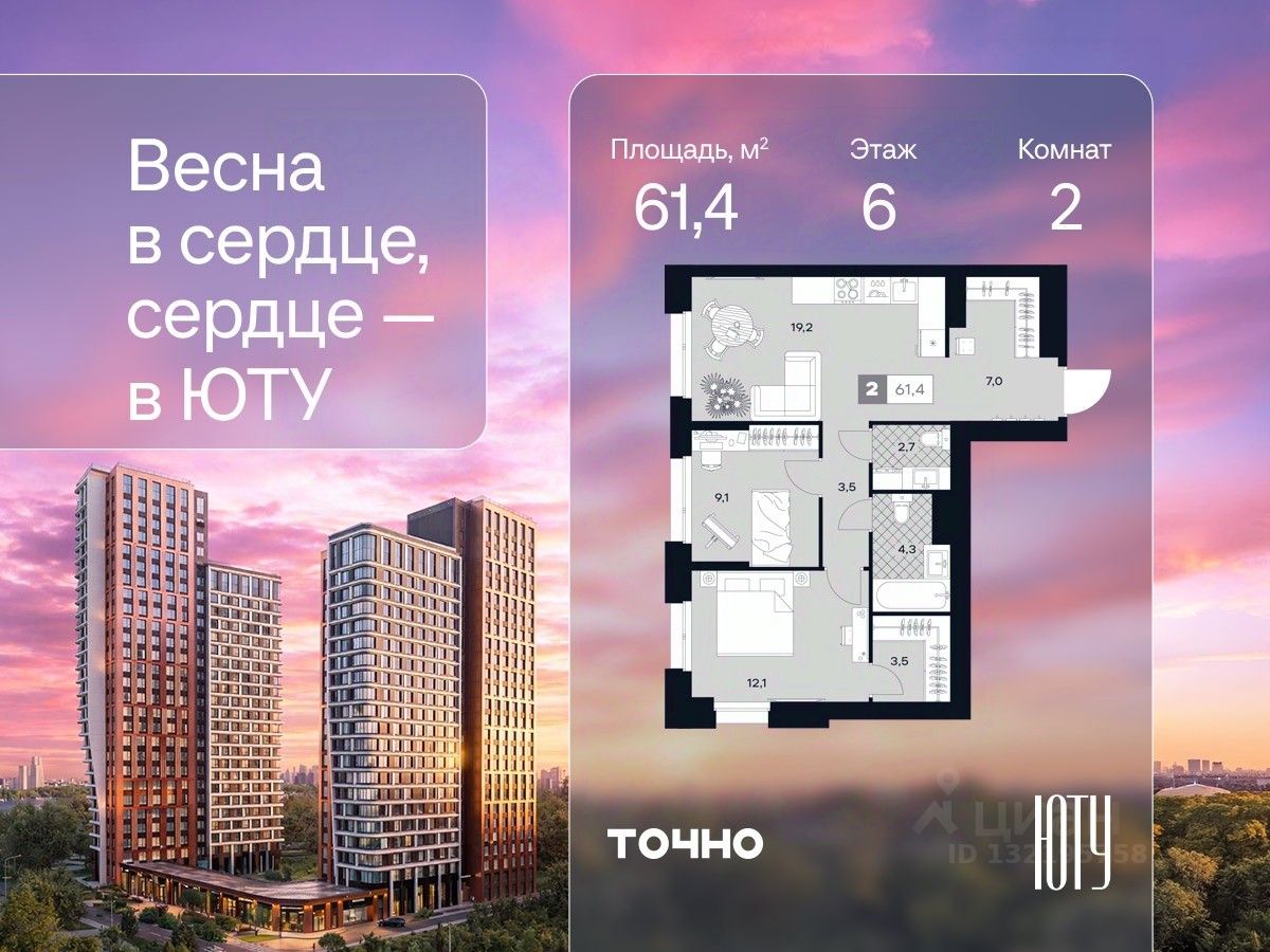 Новогодний марафон скидок! Выгода до 20% в декабре. ЮТУ-камерные небоскребы бизнес-класса с исключительной архитектурой, видовыми квартирами и подходом к большой воде-благоустроенной набережной канала имени Москвы. Проект ЮТУ создает идеальный баланс жизни в городе. Это приватный оазис, где в любой момент можно сменить контекст и выбрать любой из тысячи маршрутов к активному отдыху и ярким впечатлениям. Локация премиум-класса • Первая линии в прибрежной части Химкинского водохранилища • Исключительно тихий и зелёный район Южное Тушино • За 2 минуты можно спуститься к воде, за 10 минут найти зеленые парки и готовую инфраструктуру, за 30 минут доехать до Кремля Концепция проекта • Две футуристичные башни, соединенные торговой галереей от бюро ATRIUM • 60 неповторяющихся планировок: квартиры с угловым "плавным" панорамным остеклением, мастер-спальнями и гостиными до 39м² и просто очень большие квартиры площадью до 128,6 м² • Беспрецедентная коллекция видов-в проекте 80 % видовых квартир Чувство эксклюзивности • Своя приватная жилая экосистема -только для резидентов домов • Лаунж-терраса на крыше • Пространство скрыто от посторонних глаз-с трех сторон его окружают строения проекта Прогрессивные технологии • 3-уровневая система безопасности (Face ID, BLE-метки, видеонаблюдение) • Умный паркинг с распознаванием номеров Проект федерального девелопера ТОЧНО-из ТОП-3 застройщиков России. Компания в проекте реализует ответственный подход к развитию пространств для благополучной жизни человека. И что в ЮТУ особенное воплощение приобретает концепция человекоцентричности, как заметная грань девелопмента ТОЧНО.