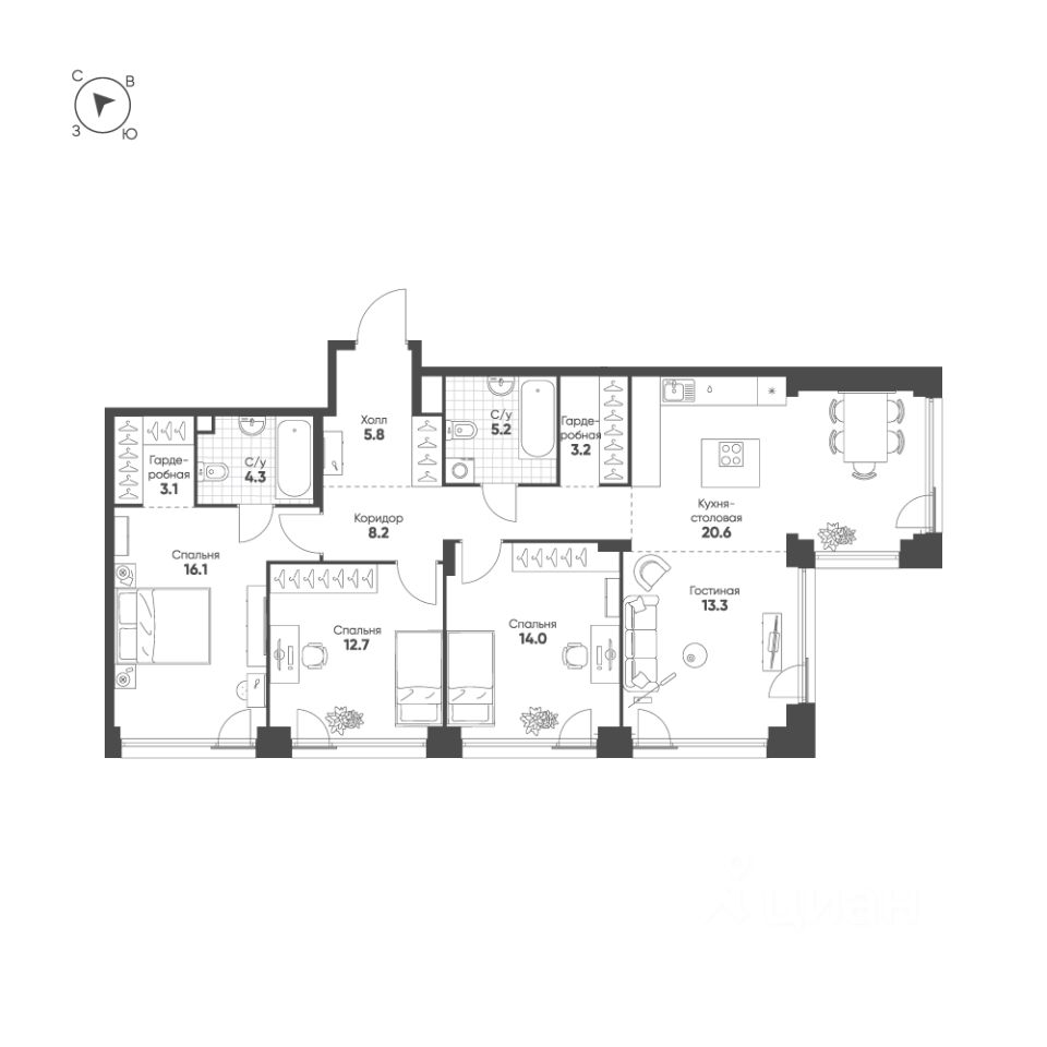 Продаётся 3-комнатная квартира в строящемся доме (Корпус 2 (4 очередь, 3 этап)), срок сдачи: III-кв. 2028, общей площадью 106.5 кв.м., на 4 этаже. Это город в городе, который не подстраивается под старые рамки, а задает новую планку и стандарт жилого района в России.