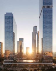 Ансамбль из четырех стеклянных башен с доминантой в 237 метров разработан по принципу современного урбанизма и выражен в лаконичных объемах — параллелепипедах со сглаженными углами, которые придают зданиям утонченный вид.