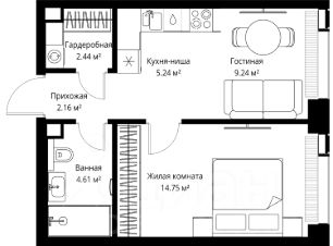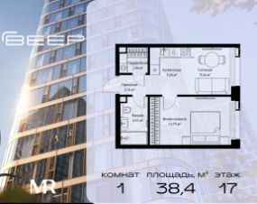 Продаётся 1-комнатная квартира общей площадью 38.44 м² без отделки в ЖК Веер на 17-м этаже 70 этажного дома.