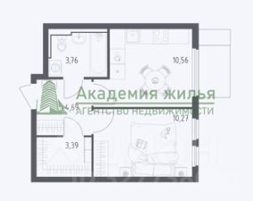 Современная планировка - квадратная комната, площадью 10.3 кв.м., кухня 10.6 кв.м., гардеробная 3.4 кв.м., совмещенный санузел. Выполнена отделка white box. Дом сдан