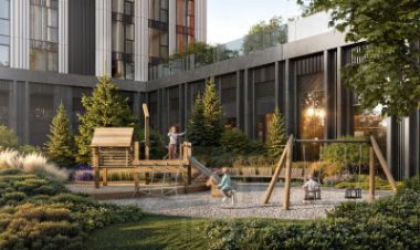 Для создания благоустройства было приглашено 2 ведущих бюро - ADM и GAFA. Разноуровневое пространство вмещает в себя игровые площадки для детей всех возрастов, тропы здоровья для пеших прогулок, крытые аллеи с качелями, места для работы на свежем воздухе, многофункциональные спортивные площадки - воркаут-зоны, столы для пинг-понга, зоны командных игр. Общая площадь закрытого двора - 4,63 га.
