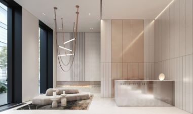 Изысканные интерьеры лобби жилого комплекса отсылают к классическим фильмам золотой эпохи Голливуда. Классика в жилом комплексе Левел Павелецкая Сити - не имитация, а современное осмысление лучшего в этом стиле.