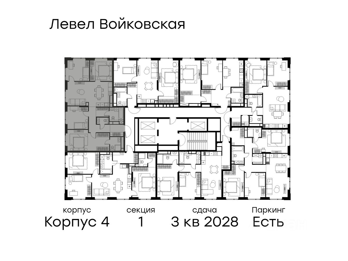 Продается 4-комнатная квартира площадью 99.10 кв. м с отделкой. Квартира находится на 19 этаже 26-этажного корпуса 4, в новом жилом комплексе бизнес-класса Левел Войковская, расположенном рядом с живописным заповедником "Покровское-Стрешнево" (застройщик - компания Level Group/Левел групп).