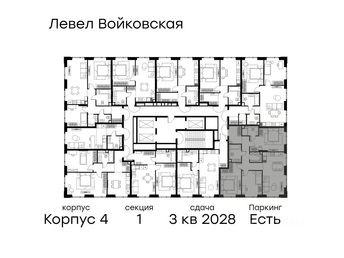 - 2 варианта дизайнерской отделки в корпусе 4 как дополнительная опция к предчистовой отделке: стиль Модерн в светлых холодных тонах и стиль Классик в нейтральной бежевой гамме. Квартиры в корпусах 3 и 5 сдаются без отделки.