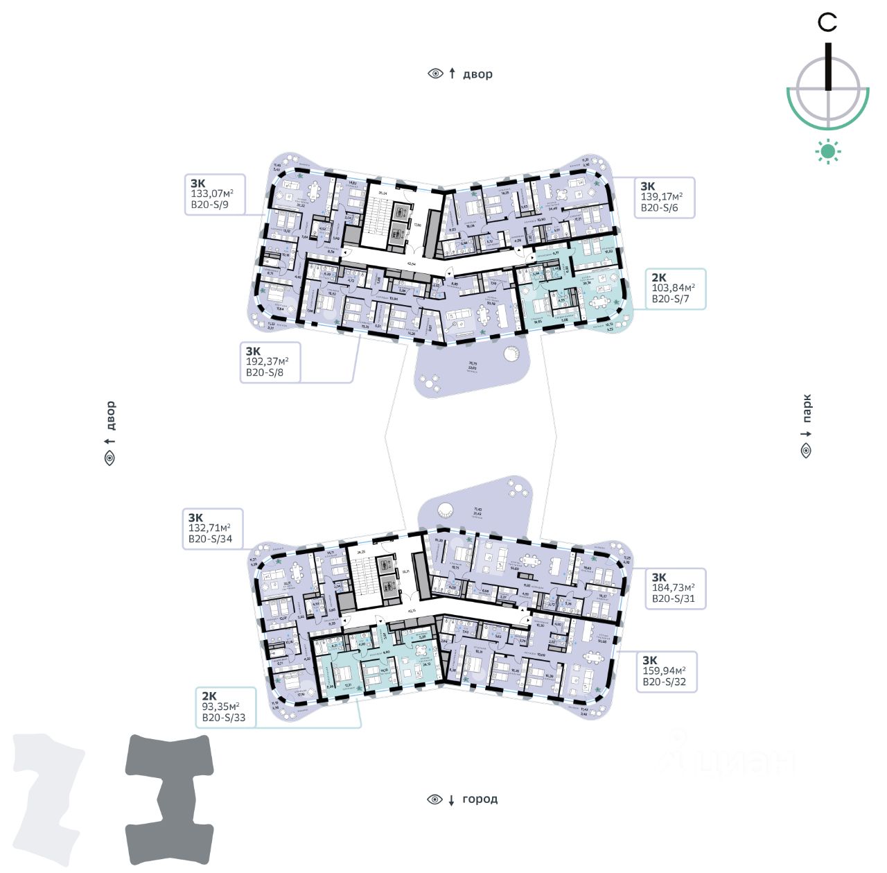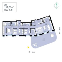 В продаже — трехкомнатная квартира с чистовой отделкой, общей площадью 192,37 кв. м. Квартира расположена на втором этаже семиэтажной секции клубного дома класса Суперб в новом районе СберСити, который строит Сбер. Дом находится на первой береговой линии Москвы-реки.
